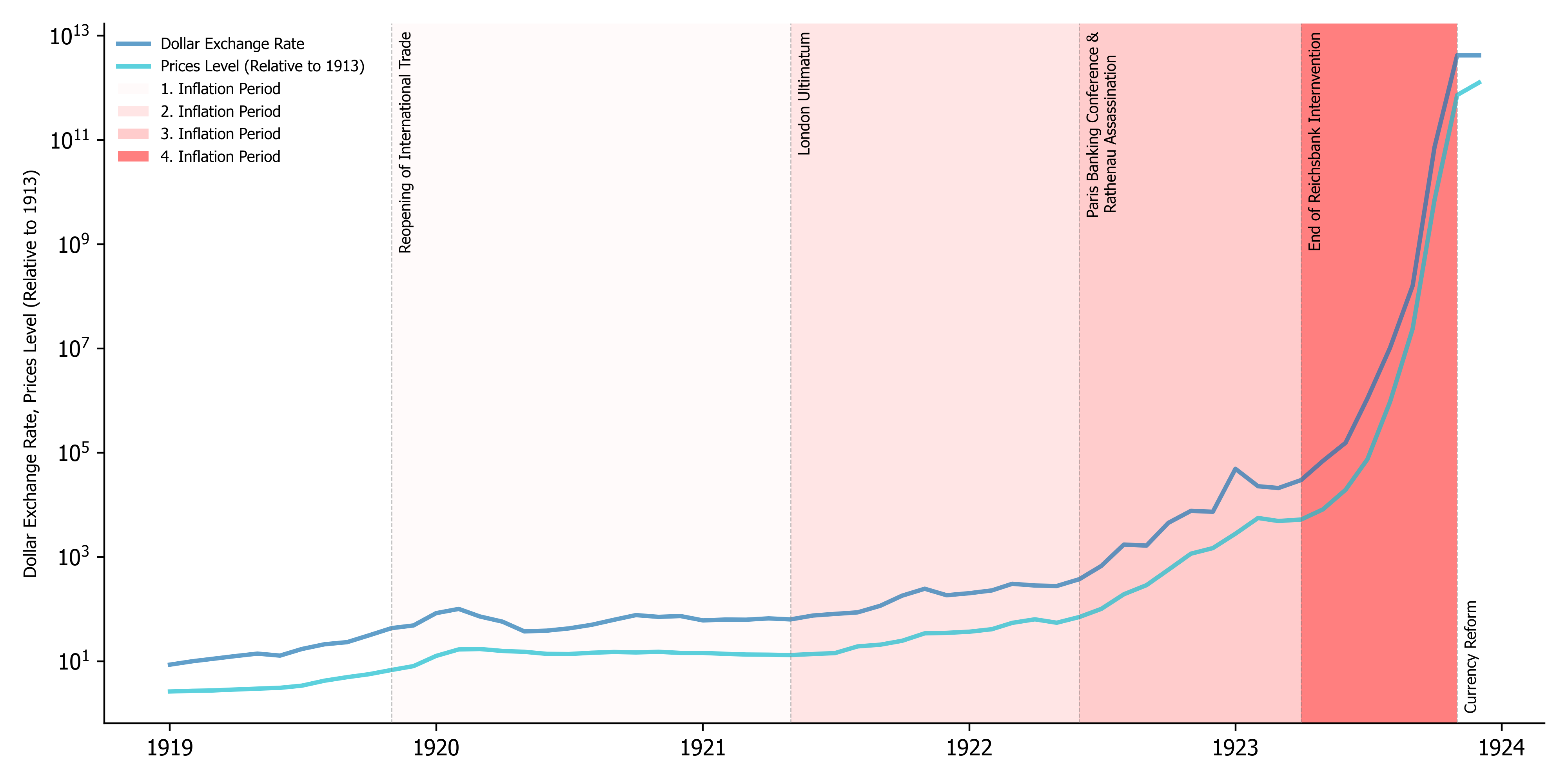 - Wholesale price data is extracted from The Economics of Inflation (pp. 442) written by Costantino Bresciani-Turroni.